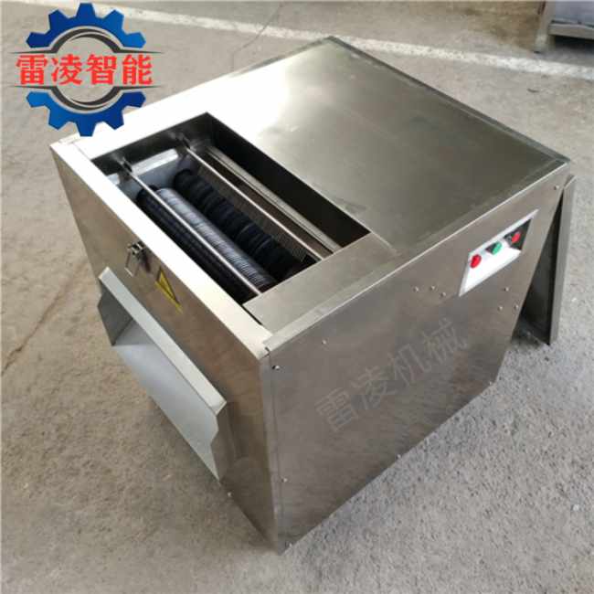 1.牛肉切条切片机:可以将块状的牛肉切成牛肉条,放料的时候请注意肉的方向和竖向,避免方向不对将肉条切散。